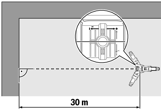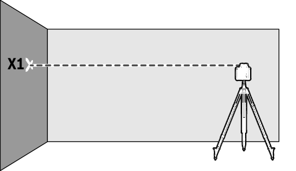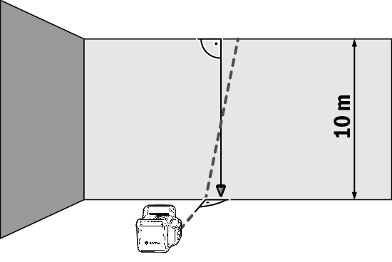 สำหรับการสอบเทียบบนพื้นผิวที่มั่นคง ต้องใช้ระยะทางวัด 10 ม. ข้างหน้าผนัง ติดตั้งสายดิ่งบนผนัง