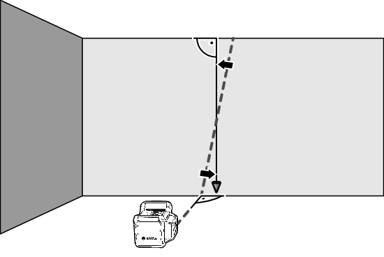 ตั้งเครื่องมือวัดที่ตำแหน่งในแนวตั้งบนพื้นผิวที่ราบเรียบมั่นคง เปิดสวิทช์เครื่องมือวัดและให้เครื่องมือปรับระดับ จัดแนวเครื่องมือวัดเพื่อให้ลำแสงเลเซอร์ชนกับผนังตรงมุมฉากและตัดกับสายดิ่ง ปิดสวิทช์เครื่องมือวัด