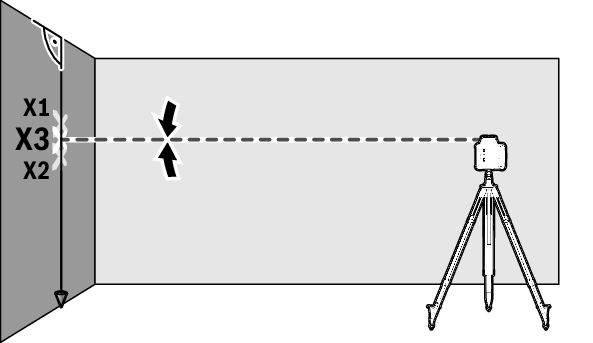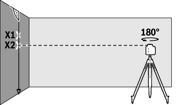 ทำเครื่องหมายความสูงของลำแสงเลเซอร์บนผนังเป็นความสูง X2 หากจำเป็นให้ใช้ตัวรับเลเซอร์ (37) ตรวจสอบให้แน่ใจว่าความสูง X2 ตั้งตรงสูงกว่าหรือต่ำกว่าความสูง X1