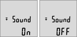 button again until ± and Sound flash on the display. - On is shown at the bottom of the display.