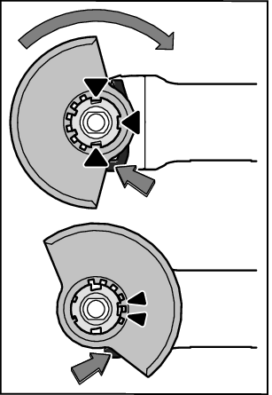 Press the protective guard (12) onto the spindle collar until the shoulder of the protective guard is sitting on the flange of the power tool and rotate the protective guard until it audibly clicks into place.